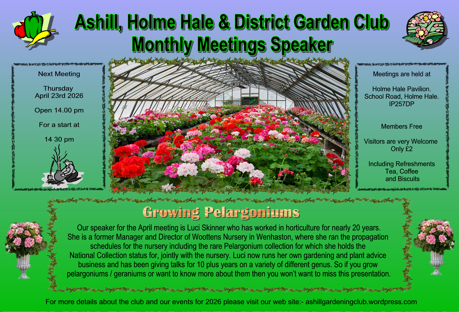 Our speaker for the April meeting is Luci Skinner who has worked in horticulture for nearly 20 years. She is a former Manager and Director of Woottens Nursery in Wenhaston, where she ran the propagation schedules for the nursery including the rare Pelargonium collection for which she holds the National Collection status for, jointly with […]